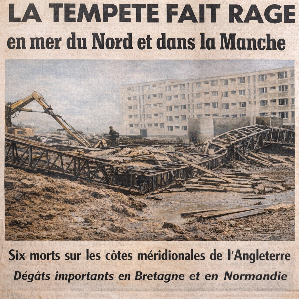 Nuit du 6 au 7 août 1962 : une tempête balaye les régions du nord-ouest et l’on déplore de nombreux naufrages en mer - 4 marins périssent à Berk (lire l'article sur le naufrage du 7 août 1962) - les vents atteignent 104km/h à Rennes, 102 km/h à Boulogne - un orage de grêle d’une rare violence éclate à Paris.