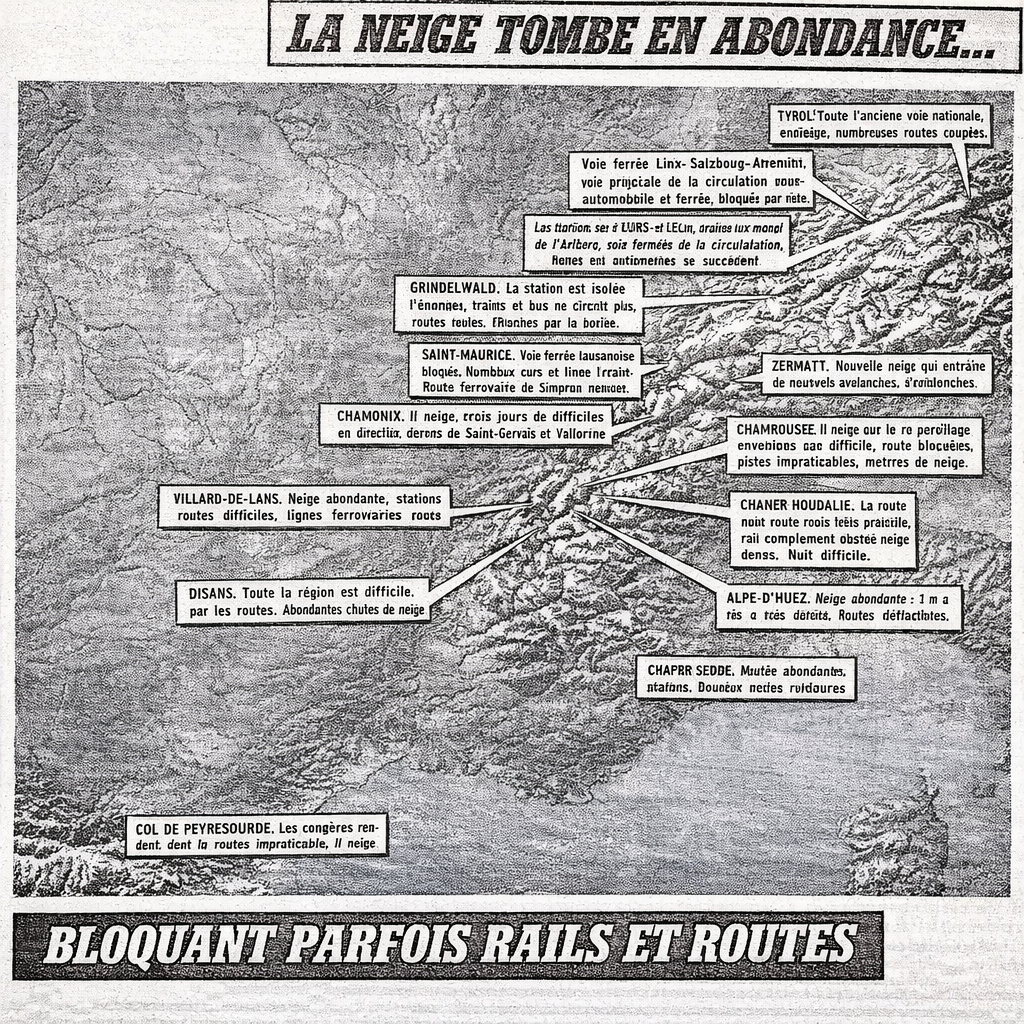 17 décembre 1962 : de nombreuses stations de sports d'hiver sont bloquées par cette énorme tempête de neige - document copyright © Meteo-Villes